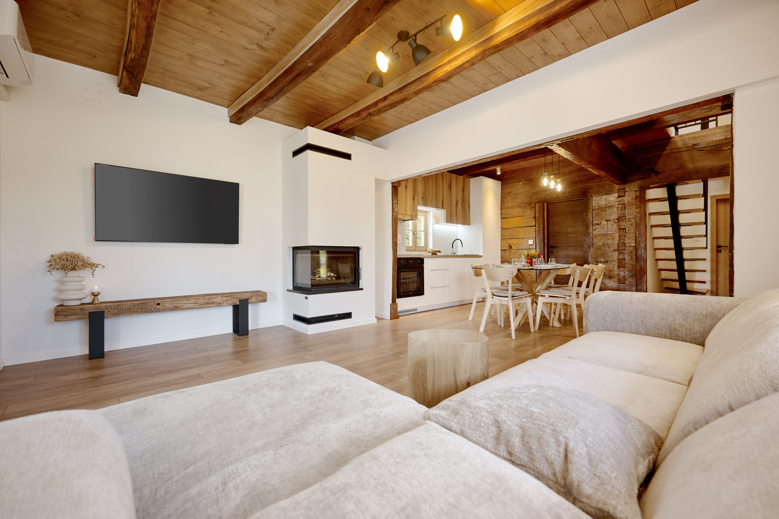 Carefully restored and thoughtfully designed, the villa combines natural materials, warm interiors, and modern amenities. Whether you are relaxing by the fireplace, enjoying the private sauna, or spending sunny afternoons by the pool, every detail is made to bring you comfort and a sense of home.